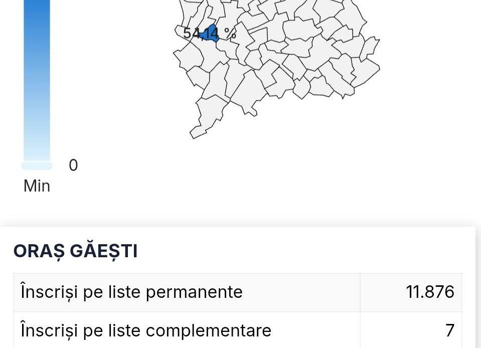 În Găeşti au votat, duminică, 6.434 de persoane, reprezentând 54,14% dintre alegătorii înscrişi le pistele electorale permanente.